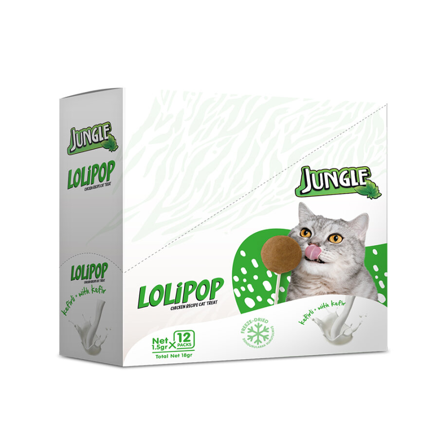 Kediniz için hem sağlıklı hem de çok keyifli bir atıştırmalık! Jungle Kedi Lolipop, yüksek proteinli tavuk ciğerini, probiyotik özellikleriyle bilinen kefir ile birleştiriyor. Lolipop formu sayesinde kedinizle oyun dolu bir ödül saati geçirmenizi sağlar.