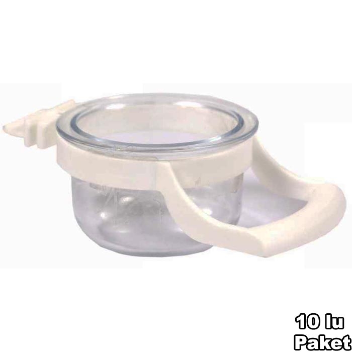 Kuş kafeslerine yumurta, bisküvi ve kum koymak için, kelepçeli silindir mamalık.